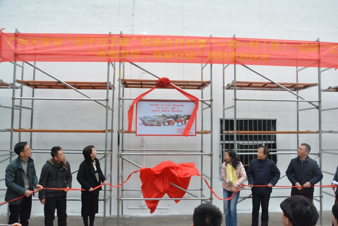 活动中,广州大学城管委会、小谷围街、广州大学及贝岗村有关领导共同揭牌启动广州大学城“百千万工程”校地共建“一校一村(居)一品牌”之“手绘乡村,青春行动”项目,标志着广州大学城校地共建共治共享进入了一个新阶段,开启了校地携手推动“百千万工程”建设加力提速的新局面。