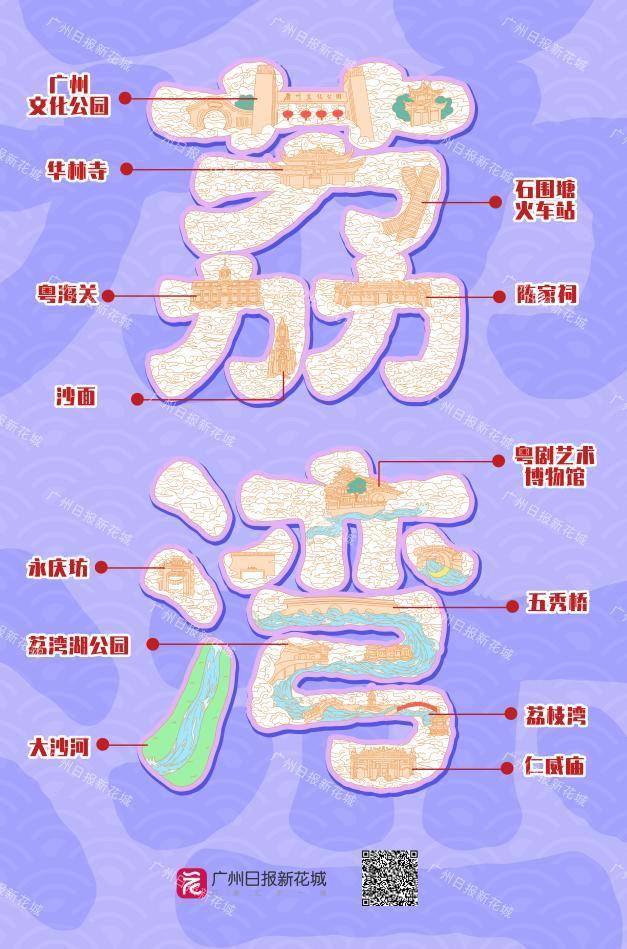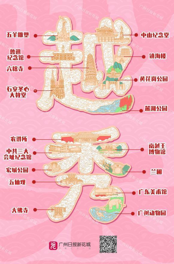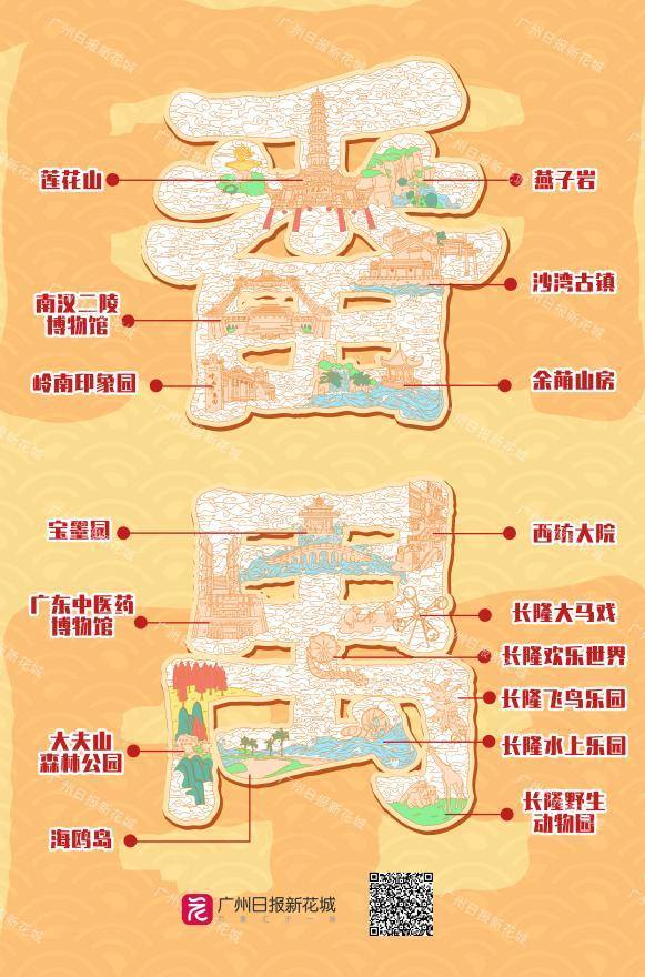 与此同时,扫描每一张字绘下方二维码,广大游客还可以详细了解各个区的文旅资讯及景点游玩指南,更加立体直观地感受汉字包裹中的花城之美,让你在广州的游玩之旅更加充实。文旅繁花竞绽放,且以诗意共远方。春节长假即将到来,广州又将迎来新一波旅游热潮,期待字绘版“文旅指南”,给广大游客带来更多的旅游新体验。