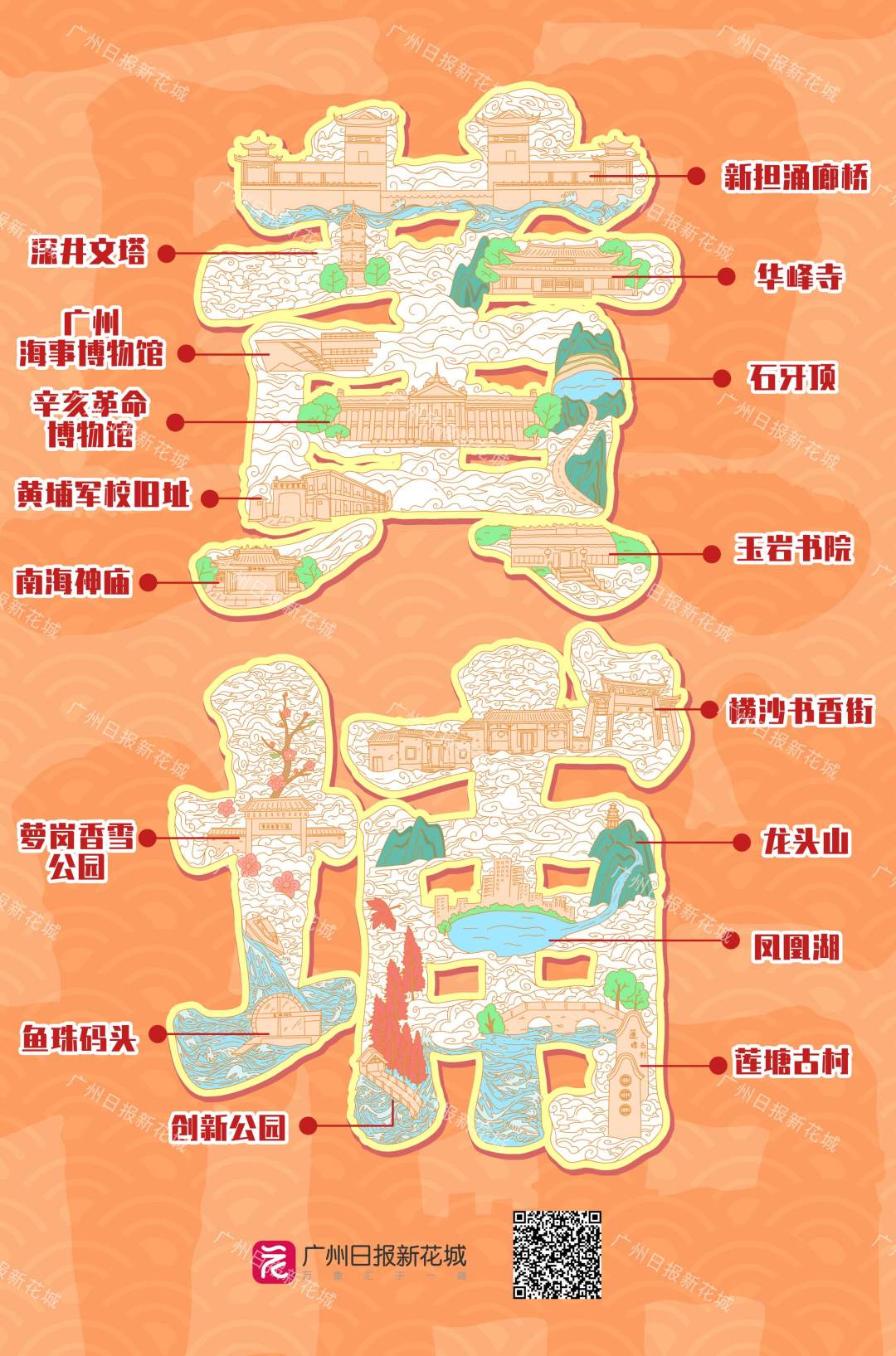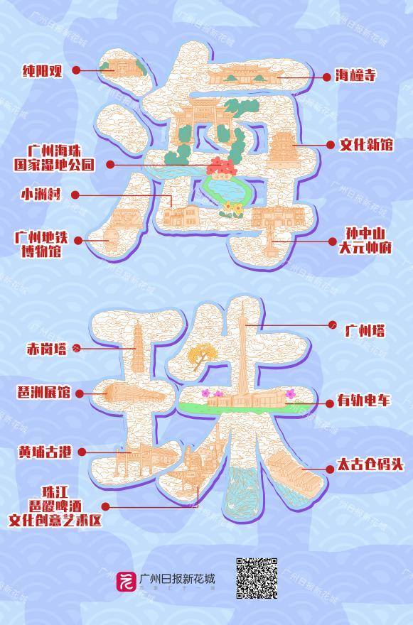 一区一绘,绘出城市美好,绘出“诗与远方”!随着龙年新春脚步的临近,由广州日报报业集团精心策划、设计的字绘版广州“文旅地图”1月28日正式上线。