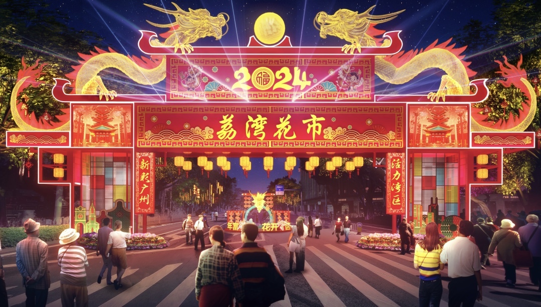 今年春节,广州荔湾区以“年富‘荔’强、花开‘湾’区”为主题,用新牌楼、新矩阵、新“IP”、新活动及新环保打造具有岭南文化特色的迎春花市,喜迎新春“开门红”,增加广州“年味”,让“老民俗”焕发“新活力”。
