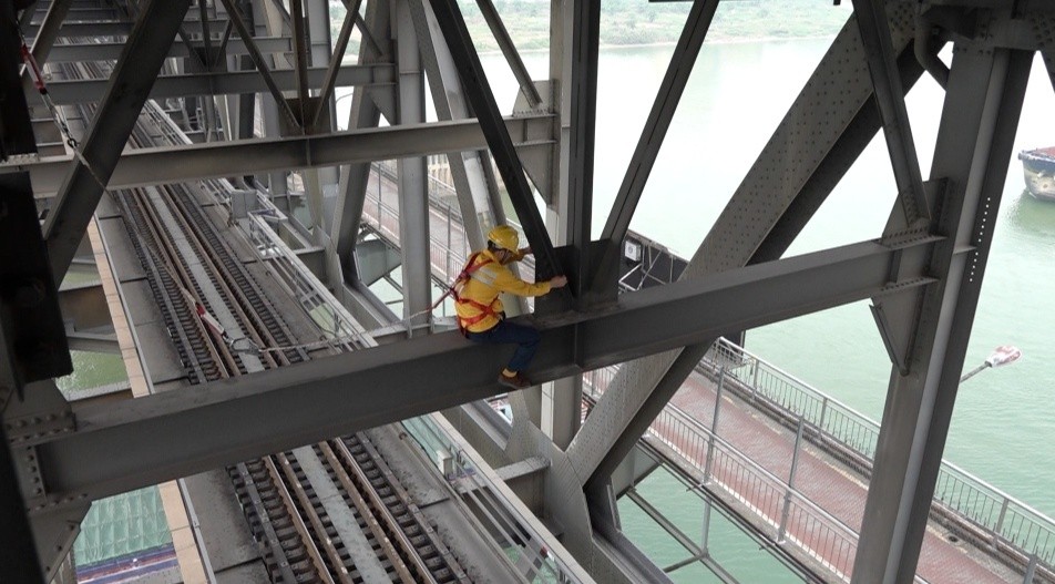 “相比桥面,钢梁上的检查难度更大。”工长王俊杰介绍道,“爬梁要克服恐高,夏天烫屁股,冬天冻骨头,要在近10米高的钢梁上排查病害,可是一项技术活。”
