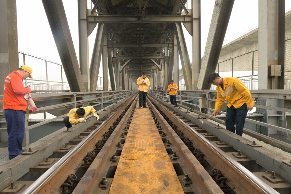 “砰砰砰……”桥面不断传来检查锤与螺栓的碰撞声,大家仔细聆听敲击声,认真分析设备状态。