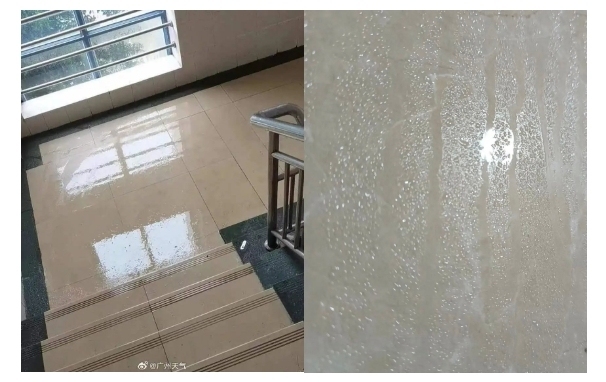 而历经秋冬,尤其是寒潮后,地面、墙壁、物件的表里都冷透了,温度小于或等于露点温度时,空气中的水蒸气达到饱和,就开始在物体表面凝结起水珠。