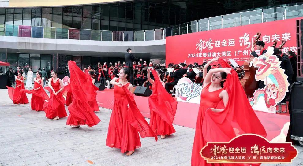 1月28日,“龙腾迎全运 湾区向未来”2024年粤港澳大湾区(广州)青年新春联欢会在“湾区之心”广州南沙举行。