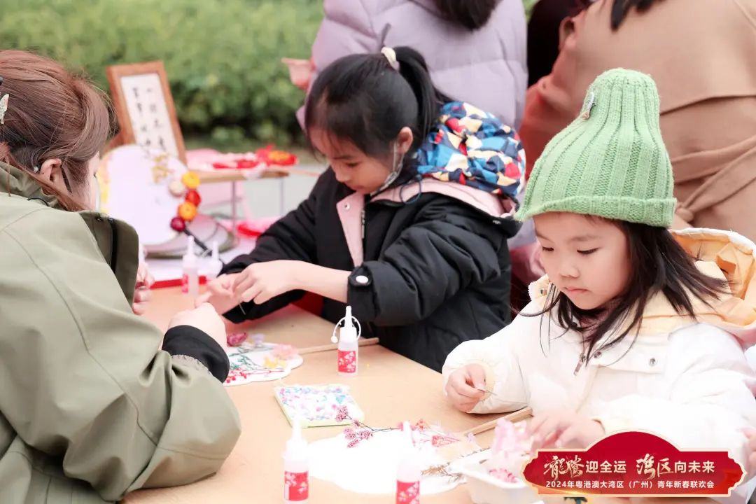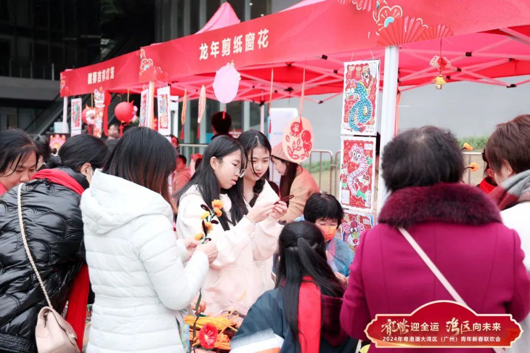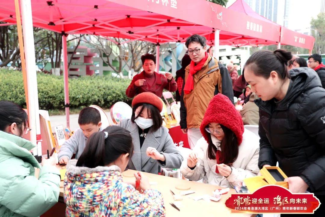 活动当天还有多个具有岭南特色的民俗文化体验摊位。在导师引导下,穗港澳青年、市民群众用景泰蓝掐丝珐琅作画,用折纸剪出龙年剪纸窗花,在一笔一画、一刀一剪中感受精彩非遗技艺、特色岭南文化、浓郁新春氛围。