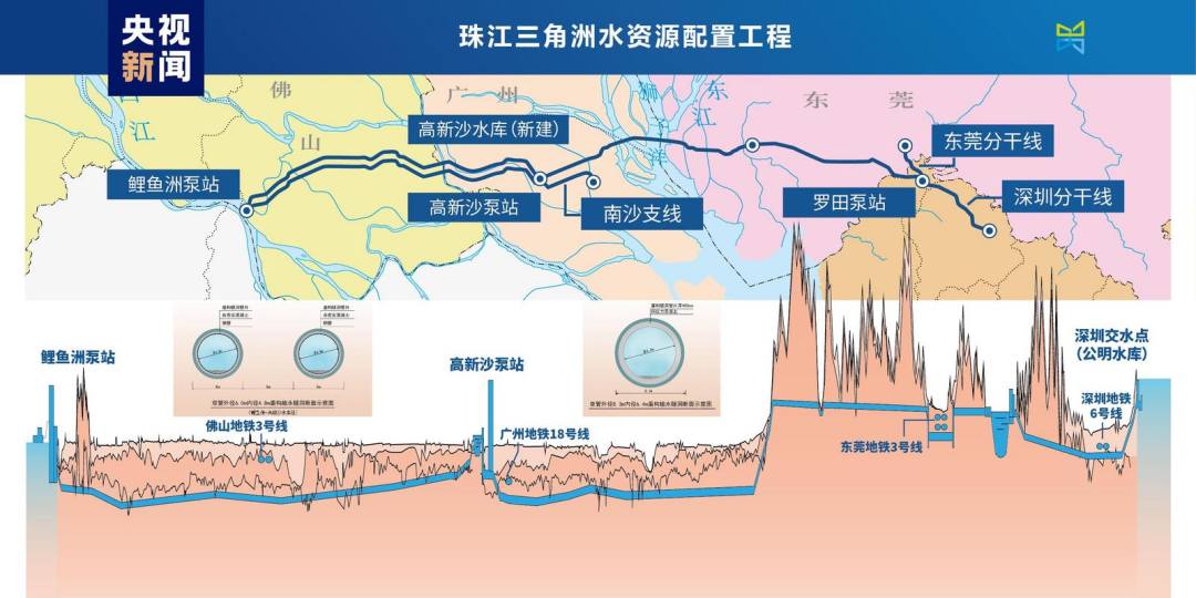 珠三角水资源配置工程于2019年5月6日全面开工建设、2022年全线盾构贯通。