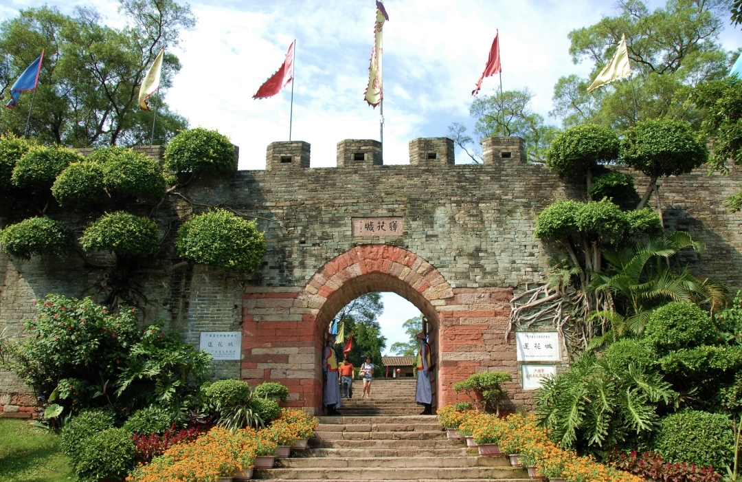 莲花城建于清康熙三年(1664年),占地18亩,椭圆形,有墩台、垛口、马步道用于瞭望、巡逻及防御,为清初“禁海迁界”之军事城堡,现为广东省文物保护单位、广州市爱国主义教育基地、广州市海防教育基地、广州市番禺区禁毒教育基地。