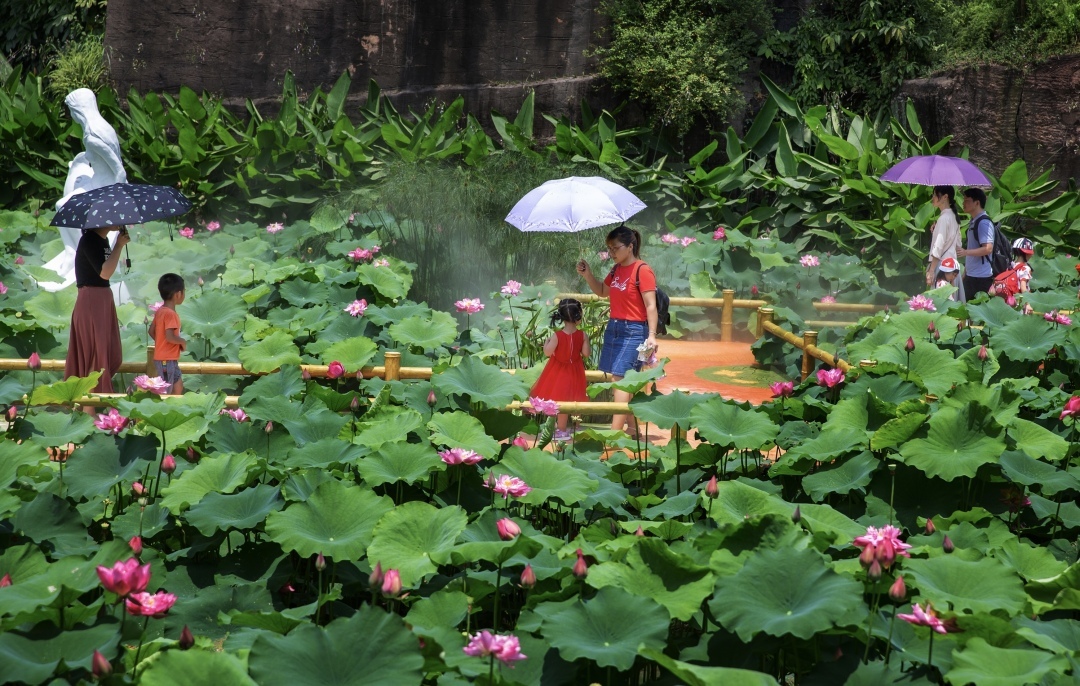 莲花仙境汇集全球1200个荷花品种和近600个睡莲品种,一年四季,莲荷竞放,曲岸浮香,宛若人间仙境。这里多次惊现三蒂莲、四蒂莲,更出现过世界首例五蒂莲、七蒂莲、七心莲等罕见之奇观,为广州增添吉祥美好的文化符号,吸引世界各地游客慕名而来。