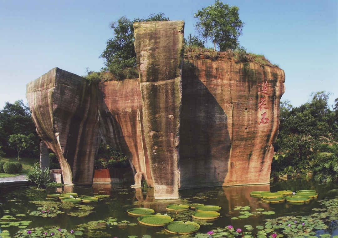 缘起秦汉时期的莲花山古采石场遗址,现有大型矿坑16座,孤峰丹壁、奇岩异洞、宏伟瑰丽的石景奇观令人赞叹,为全国重点文物保护单位。古采石场是古番禺(广州)2200多年人文历史的见证者,是历代南越先民开山劈石、建设城乡、实干兴邦的铁证,有“营城之源”之美誉。
