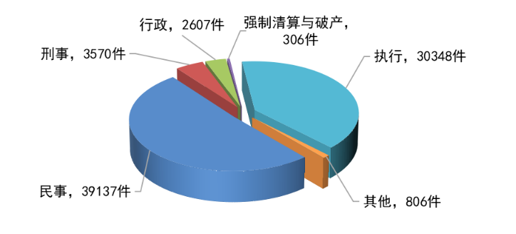 (备注:全年受理案件86789件,结案76774件;其他案件是指非诉财产保全审查、司法拘留、司法罚款、司法协助案件。)