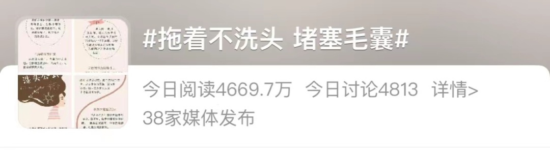 昨天,“拖着不洗头 堵塞毛囊”登上热搜