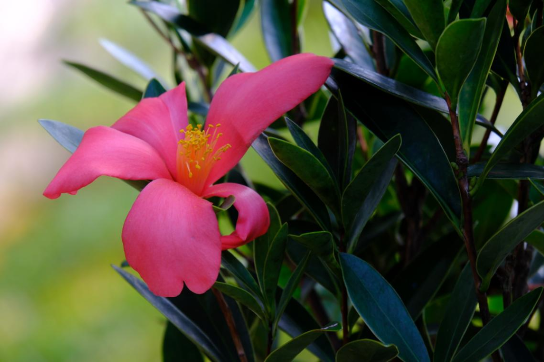 杜鹃红山茶被称为植物界的“大熊猫”,其野生种群仅分布在广东阳春鹅凰嶂自然保护区,野外调查仅发现千余株个体。杜鹃红山茶的花朵大而明媚,艳而不俗,花蕊星星点点,与花瓣相映成趣。令人可喜的是,杜鹃红山茶一年四季月月都可以开花,而且不畏酷暑严寒,非常好养活。