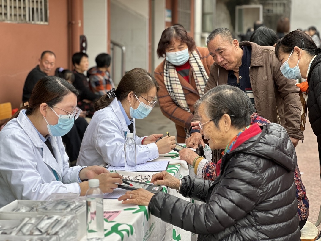 经过简单的视力筛查后,今年70岁的西洲村村民刘大妈拿到了一副300度的老花镜。“以前字小一点就看不清了,这次刚好有免费检查就过来了。”刘大妈一边说一边伸出了大拇指为活动点赞。