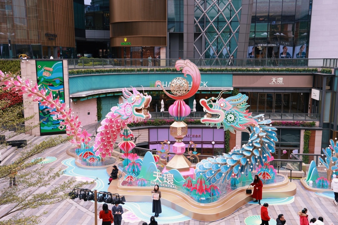 此外,广州太古汇更将龙元素与广州本土传统花街文化融合,契合新春阖家团聚的“云螭游春”国潮花街和“鸿运盲盒”限时商店应运而生,在感受传统与新潮的趣味碰撞之际,开启祥瑞甲辰龙年。