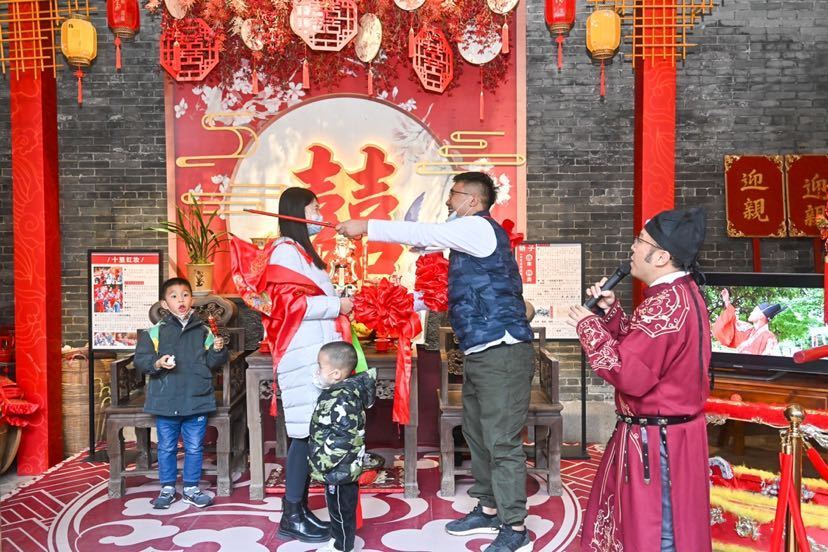 “新年溜溜有喜事!”2月12日-2月15日(年初三至年初六),沙湾古镇将举行喜抛绣球体验活动,想要在新年沾沾喜气脱单的游客们,可以到岭南囍事文化馆体验抛绣球的中式婚礼习俗。同时,喜·礼节体验活动中将展示各朝婚礼体验,还有人生礼节、花轿巡游,市民游客均可在2月底到3月底前往岭南囍事文化馆观看,对中式传统婚礼有兴趣的新人还能进行专场定制,欢迎各位游客前来体验,深入了解中式婚俗文化。