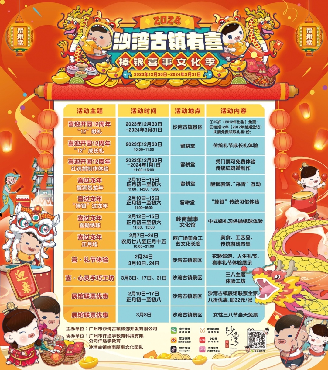 春节即将来临,2024年广州番禺区沙湾古镇第一季度“2024捧银喜事文化季”春节系列活动也如期而至。