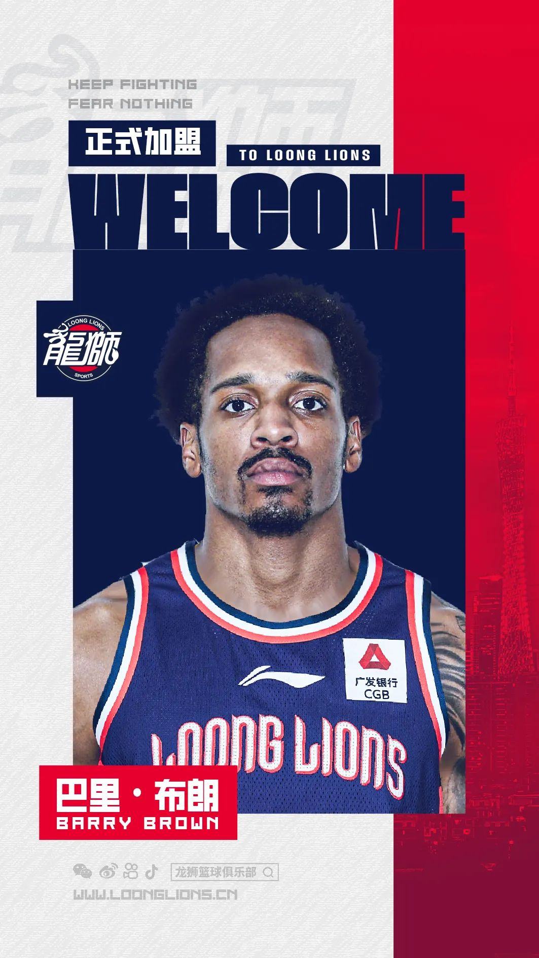 今天,广州龙狮宣布签下新外援巴里·布朗。