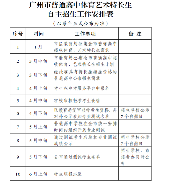 2月1日,广州市教育局发布《2024年普通高中学校体育艺术类特长生自主招生工作方案》(以下简称《工作方案》)。