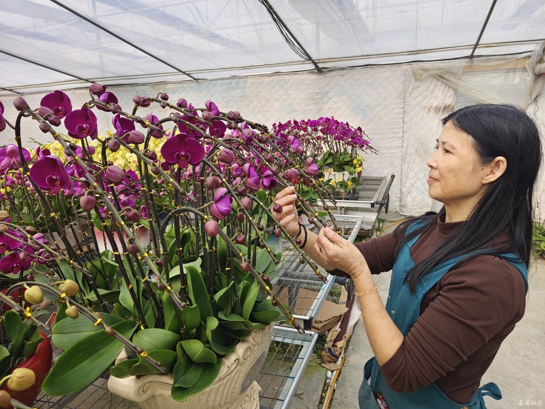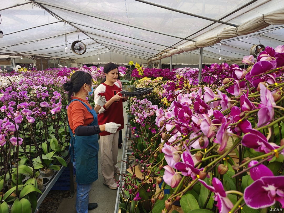 “今年蝴蝶兰的销售情况比前几年好多了,现在每日都会收到不少客人订货的咨询,除了本地街坊采购外,外地需求量也比较大,主要销往深圳、成都、上海、江苏等地。”容佩珍说,前几年受疫情影响,她种植的蝴蝶兰一度滞销,后来通过政府大力推广和媒体宣传,产品上线了“番禺线上花市”小程序,打响了蝴蝶兰的知名度,扩宽了销售渠道,吸引了很多外地客商前来选购。随着物流体系日益完善,目前基地花卉不仅面向全国市场销售,甚至走出国门远销至越南。随着市民消费习惯的改变,蝴蝶兰市场还开始出现“淡季不淡”,种植前景非常好。