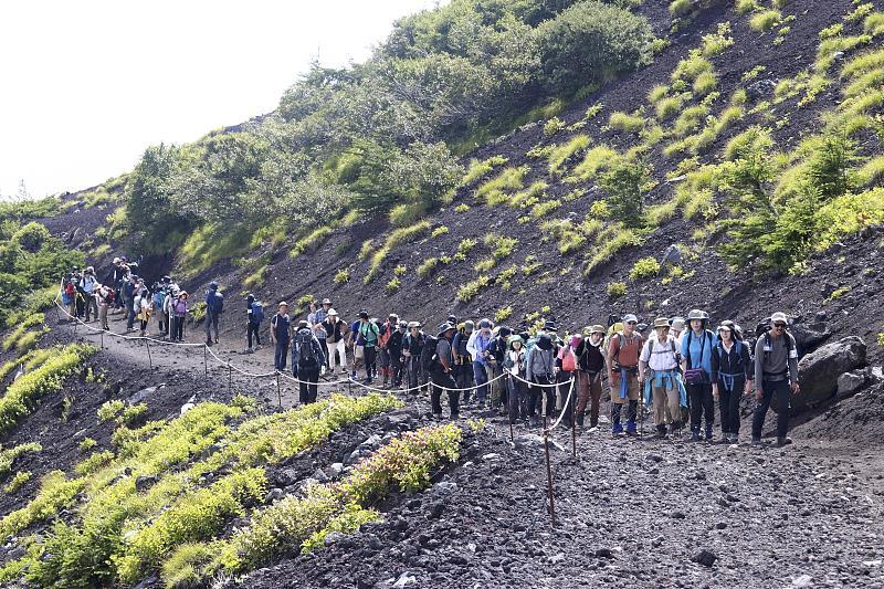 日本环境省数据显示,去年富士山开山期通过不同路线达到八合目的登山者超过22万,其中逾60%走吉田路线。