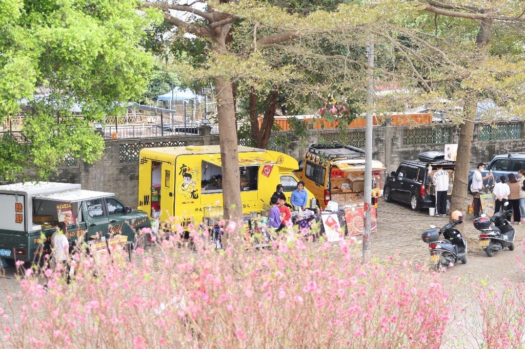 容桂是中华美食名镇,龙涌口的桃花也成了美味的主角——有以桃花入味的桃花美食,也有以“桃花墟”为主题的汽车市集,非常精彩。而在活动主舞台,一连串的文艺快闪节目点燃现场激情……好看、好玩、好吃,这场文化盛宴人气旺、创意足!