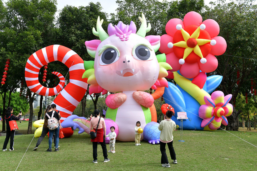记者看到,南门入口的小红龙睁着大大的“萌”眼,迎接孩子们的到来;南广场的小粉龙身长80米,在百米幸福花街里穿梭,邀请孩子们一同游玩;南草坪上,身高5米的小旋龙色彩斑斓,成为吸睛的拍照打卡点;甲辰年小青龙在滨水边与孩子们共赏一湾春水。