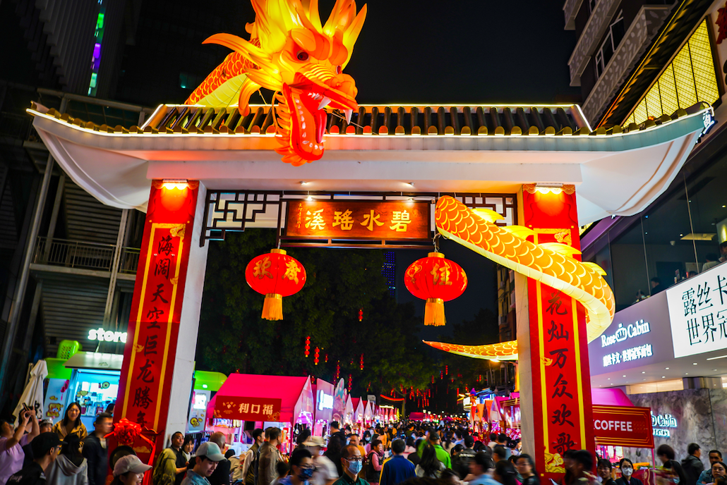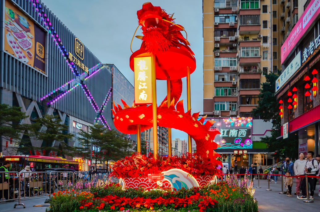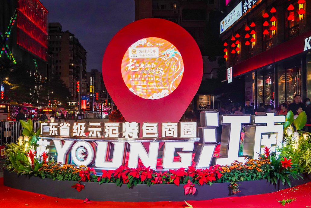 伴随着花市气氛营造,今年江南西商圈还新增了一系列灯光装饰。“龙腾江南、欣欣海珠”和“瑶溪二十四景”的灯画装饰与灯光自亮相以来,已吸引了累计超十万群众前来打卡。