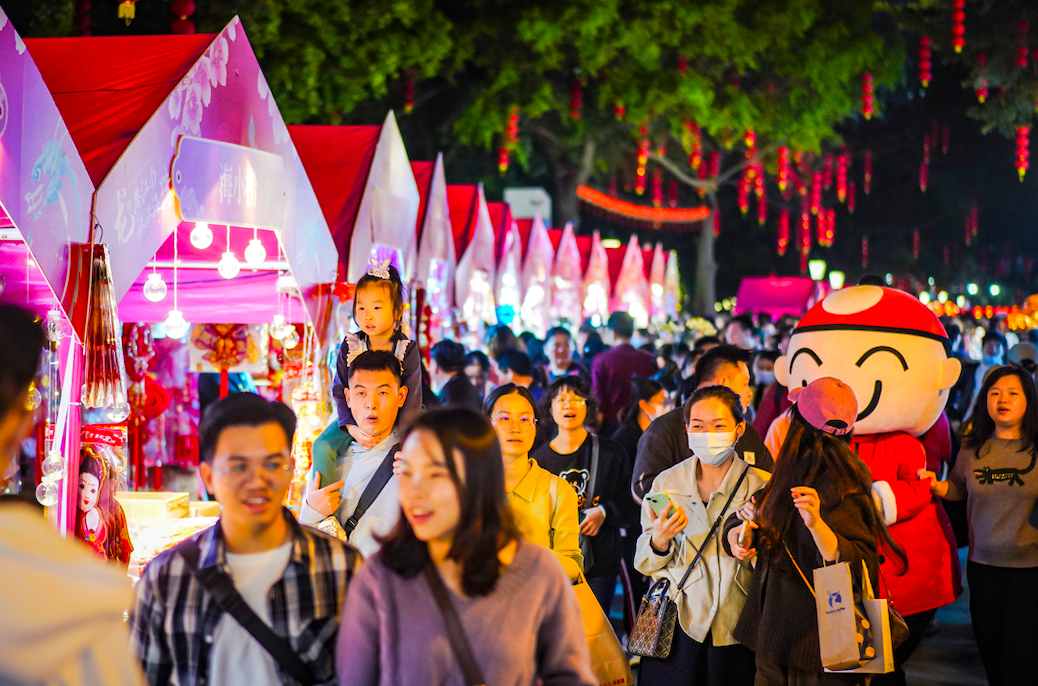 流光溢彩的景观装置、丰富多样的花市摊位、灵动大气的灯饰造型……市民在家门口就可以逛花市!这里是海珠迎春花市分会场——江南文商旅融合圈!