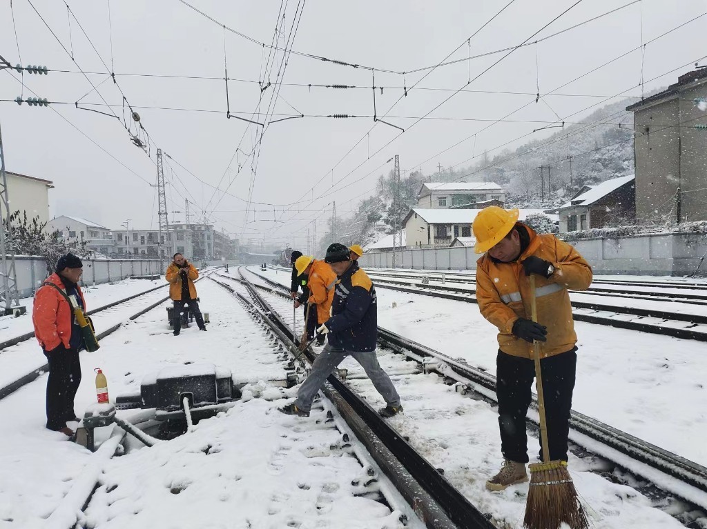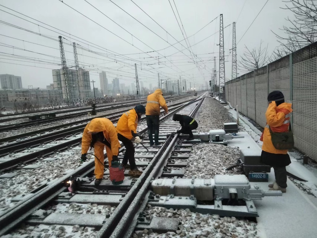 为确保线路通畅,管内车站、电务、工务等相关单位组成突击队,对重点区域、线路进行全覆盖、全时段打冰扫雪作业,按照预定的方案及时出动人员分组对道岔进行包保、运用工具对道岔等关键部位进行除冰,并涂抹防冻液。