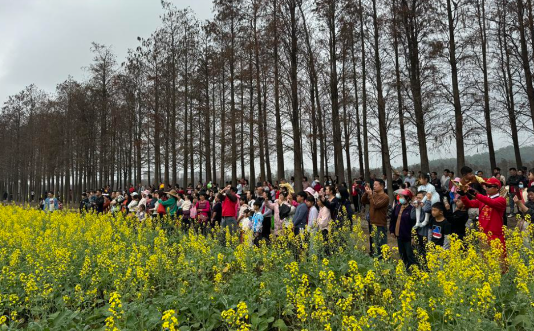 作为新兴的乡村休闲观光旅游网红打卡点,新村村油菜花田近两年累计接待游客80万人次,带动消费约500万元。此次油菜花嘉年华活动依托千亩稻田,融合人文、生态、体验三大要素,打造“农业+旅游”双核驱动的农文旅特色品牌,以“农业+”实现三产融合,进一步带动村民参与水稻种植和乡村休闲旅游,有效增加村民收入,同时为外来游客、富山工业园区产业工人、周边群众提供休闲消费度假地,推动新村千亩稻田成为斗门区乃至珠海市、珠三角地区群众节庆出游的又一网红打卡点。