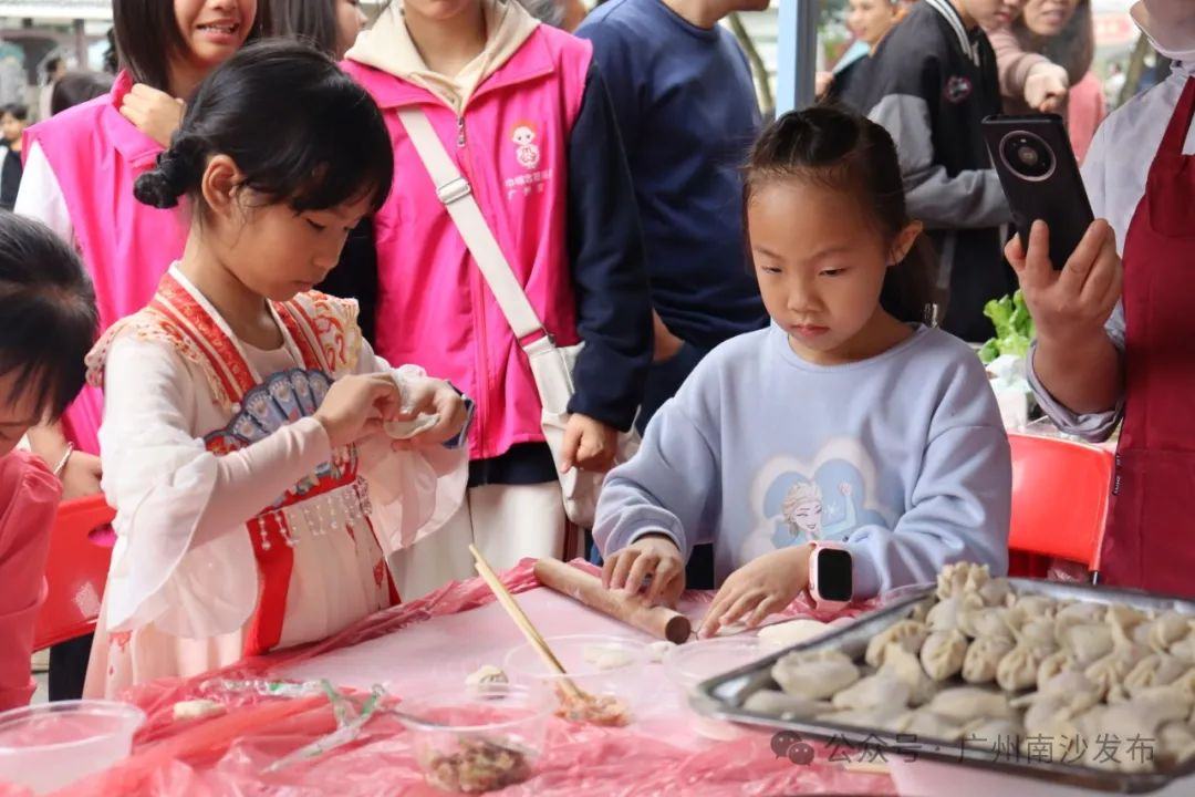 年货摊位和美食摊位前,市民们络绎不绝,挑选着心仪的年货和小吃。东涌特色美食撑粉,还有过年必备的煎堆、油角等新年特色美食香气逼人,吸引着市民驻足品尝,亦有不少市民带着孩子们现场体验包油角的乐趣。