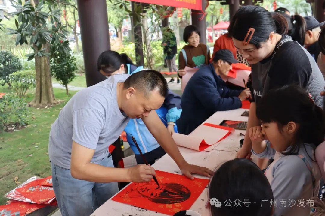 此外,现场还设置了挥春摊位,书法老师们现场为市民免费写挥春、送祝福,特别的是,除了可以写传统的挥春和“福”字作品外,还可以画上一幅简单的肖像画。
