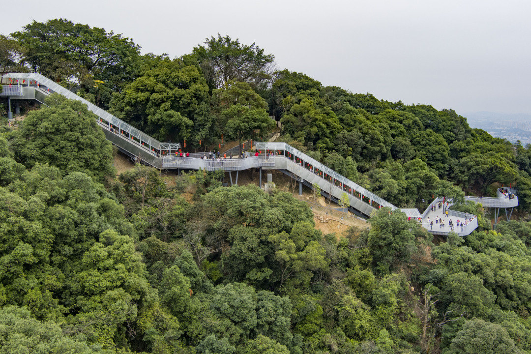 【白云山摩星岭观光扶梯正式开放,游客赶喝“头啖汤”】据了解,摩星岭观光扶梯开放时间为每日10:00-19:00,市民游客只需购买摩星岭的入园门票,便可免费乘坐观光扶梯。详情>>>