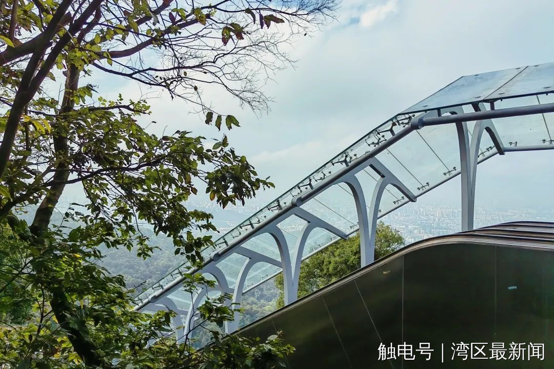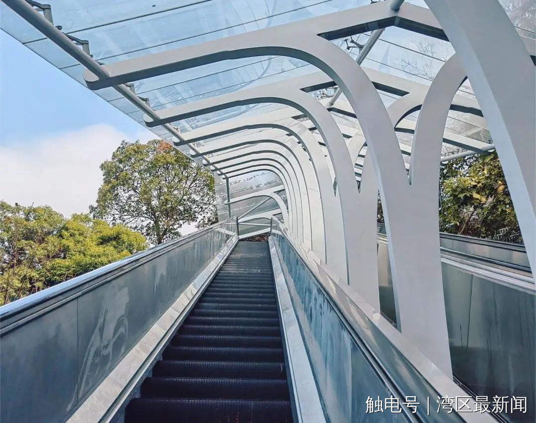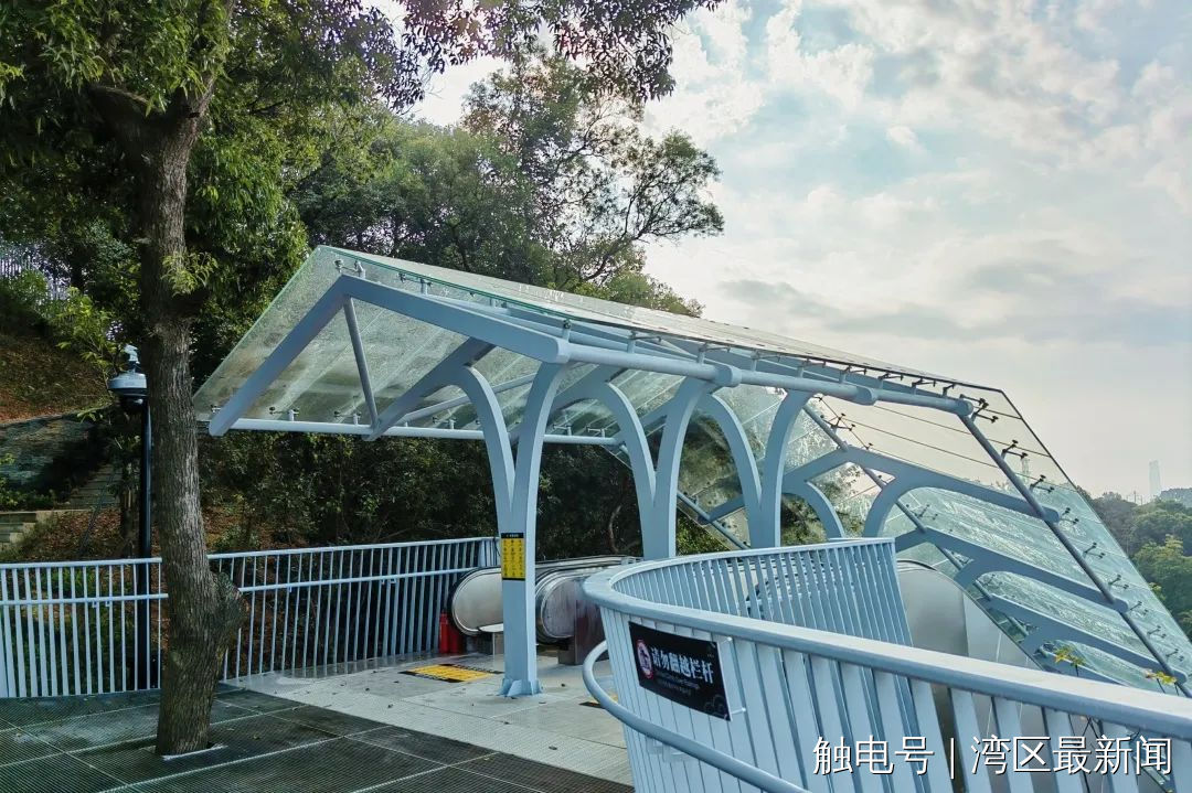 在摩星岭南门入口处前行约150米,便可乘坐扶梯,登顶时间从最初的15分钟缩短到5分钟,轻松实现“无痛爬山”。