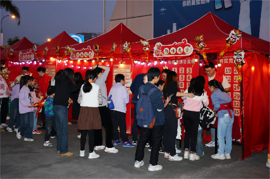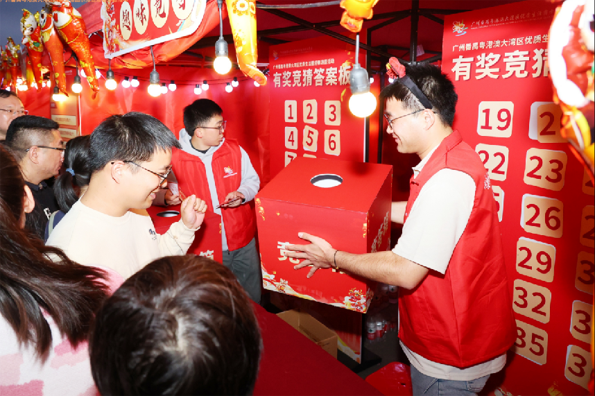 同日启动的2024年番禺区迎春花市钟村花街现场,还设置了别开生面的游园活动,街坊在家门口看春晚之余,还能逛花街、玩游戏,有奖竞答、许愿树祈福、明信片赠言等。