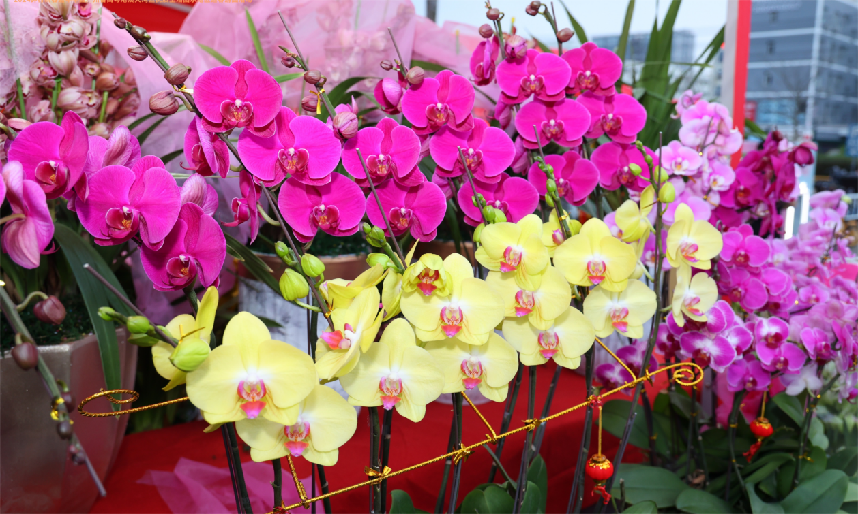 本次新春花街汇聚了各种年花品种,蝴蝶兰、剑兰、年桔,品类齐全,争奇斗艳,总有一盆你会想带回家。