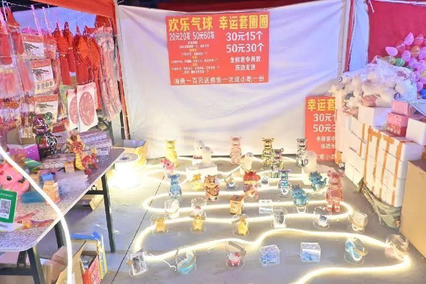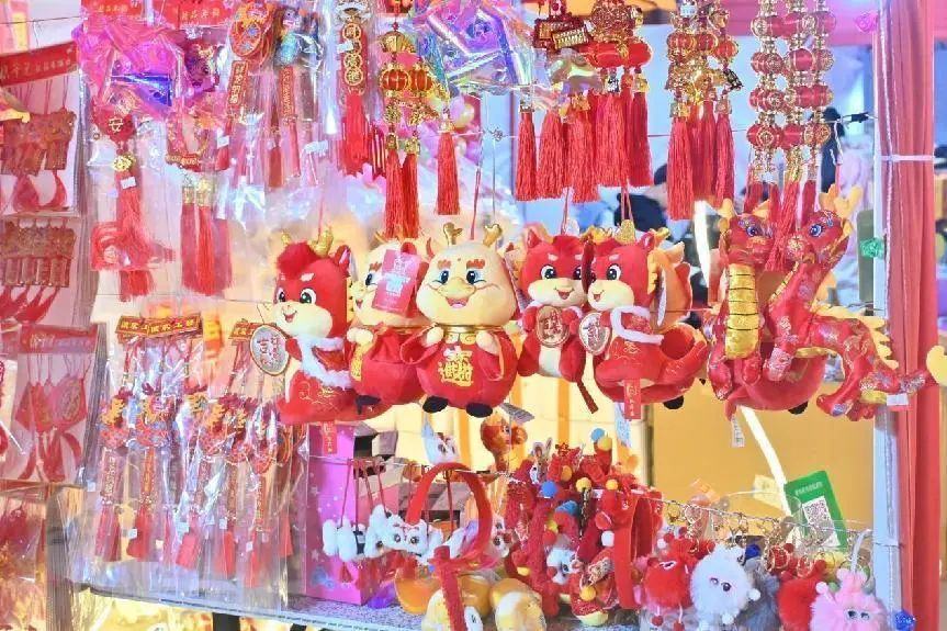 现场年货一条街,有挥春、剪纸、灯笼等各式各样的装饰品,摊位上琳琅满目,吸引来不少市民驻足观看。食饱玩足,还有各种精品年货供街坊选择。