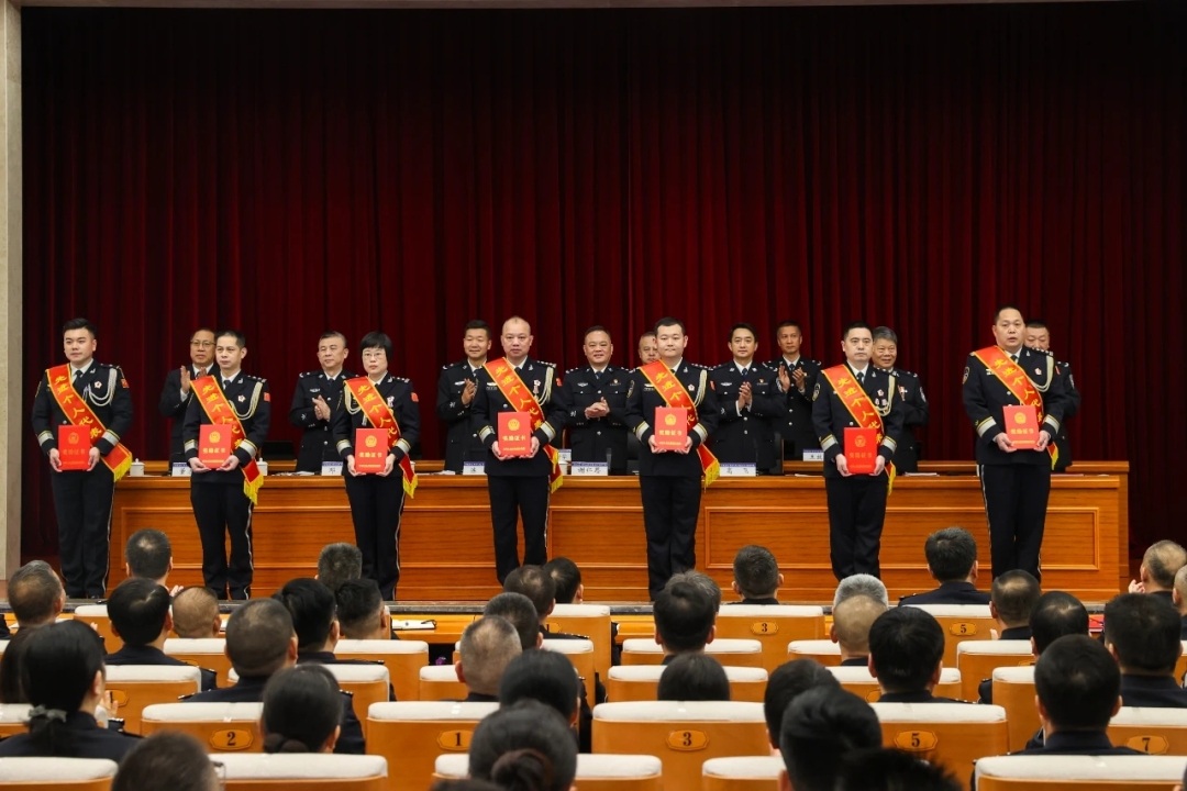 会上,全体参会人员观看了2023年全市公安工作视频片;市局党委委员、政治处主任陆翔学通报了2023年全局立功受奖情况;谢仁思和与会局领导为先进集体代表、立功受奖民警和辅警代表颁奖。