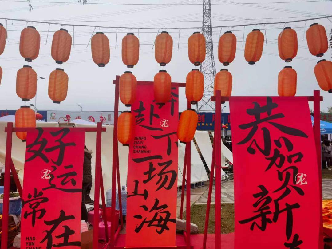 春满乾坤福满门,非遗旁边的挥春摊位,则有书法老师即席挥毫送春,铺纸蘸墨、笔走龙蛇间,精妙创作随之完成,文化气息跃然纸上,赏心悦目的同时,市民纷纷讨个好彩头,迎春纳福。