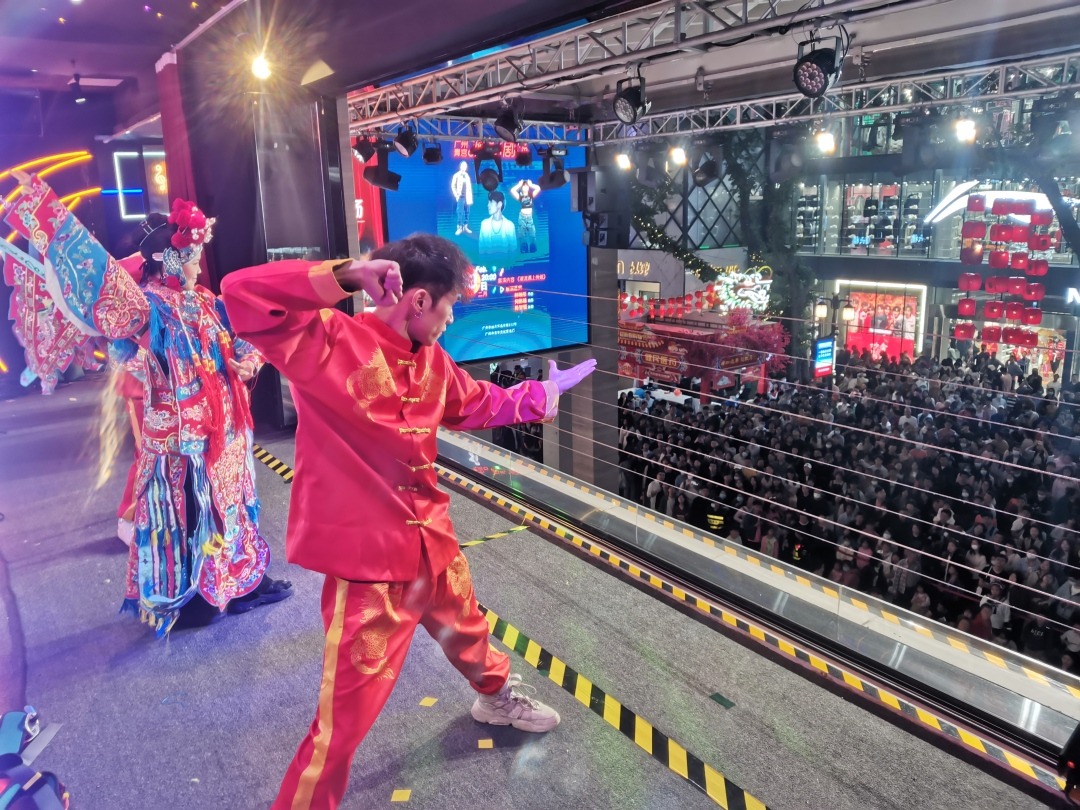 2月3日展演现场,随着《穆桂英挂帅》音乐响起,身穿戏服的“小穆桂英”在舞台上一跃而起,李灏带领舞者们闪亮登场。传统的戏曲表演与武术动作融入活力十足的街舞,呈现出非遗与新派文化融合之美。