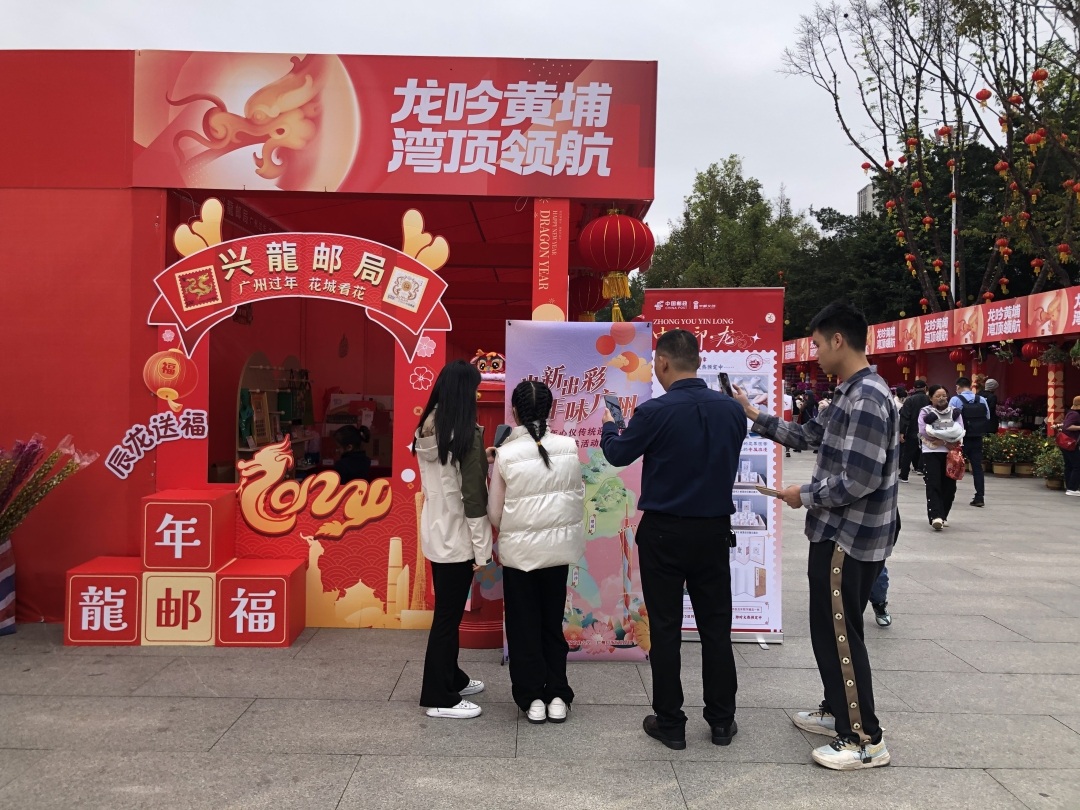 邓女士觉得,今年花市节目玩法也更多了,“往年没有那么多表演,现在每天都有表演,很适合带着小孩来看。”她和同事认为,今年花市的人更多了,但因为场地扩大了规模,逛起来很舒服。广州市花市办联合广州邮政在花市内设立的“兴龙邮局”,吸引了众多街坊前来体验。工作人员说,集戳、盖新春主题特色叠色章的活动特别受欢迎,还有龙造型公仔,卖得最好,一个上午便卖出了二三十只。
