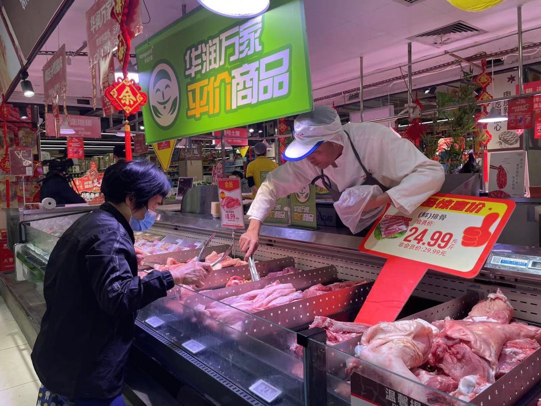 华润万家(客村店)店总蒋军表示,超市从2月1日已经开始低于市场价销售排骨、前腿肉等商品,排骨24.99元/斤,前腿肉8.99元/斤。“这次增加了油、米、鸡蛋等10多个商品进行平价销售。猪肉、食用油比市场价低了20%,蔬菜降幅15%以上。大白菜、白萝卜、油麦菜的销量都很好,仅一个上午货架就上新了两三轮。”蒋军告诉记者。此外,市民朋友还可以在线上商城购买平价商品,价格跟店里一样。