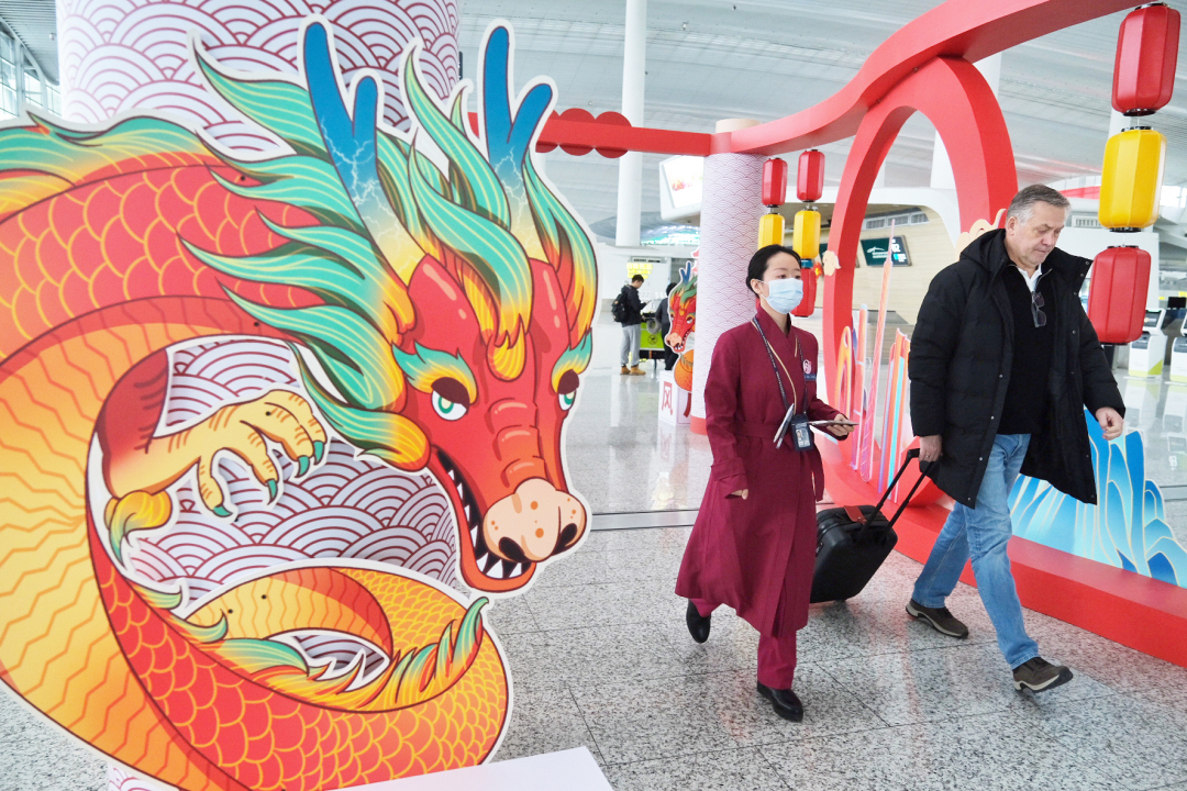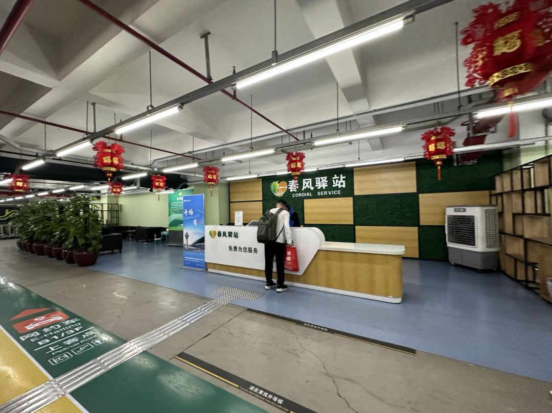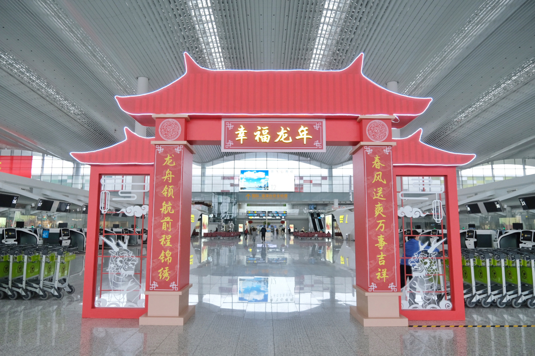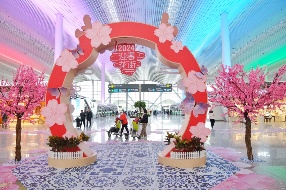 春运期间,白云机场航站楼在旅客途经的线路附近搭建龙年主题美陈装置,两座航站楼迎客的出发大厅分别打造龙年主题文化花市景观和迎春花街。主题花街有工艺品、网红精品、岭南特产、地方美食等售卖,在年廿八、年初一等特别的日期,还将为旅客带来写春联送福字、醒狮表演等传统文化体验活动。