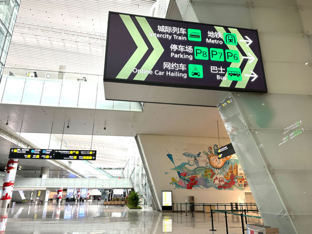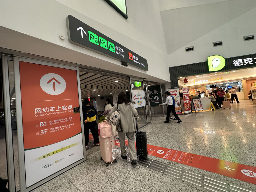 白云机场与网约车平台合作,在P3停车楼负一层及P8停车楼负一层及三层设立网约车专用上客点,P8停车楼还为网约车上客点设置了人行及车行指引,沿途增加了“彩虹”地贴,更好地指引旅客前往网约车上客点。