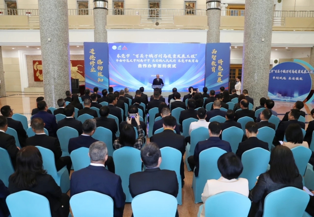 华附赋能、长安强教!2月5日,华南师范大学附属中学与长安镇人民政府、东莞市教育局合作办学签约仪式在长安镇举办,三方将携手共建华南师范大学附属中学东莞长安学校(以下简称“华附长安学校”),努力把该校办成东莞教育的标杆学校,以教育“软实力”为长安高质量发展提供“硬支撑”,为省市推进“百千万工程”贡献教育力量。