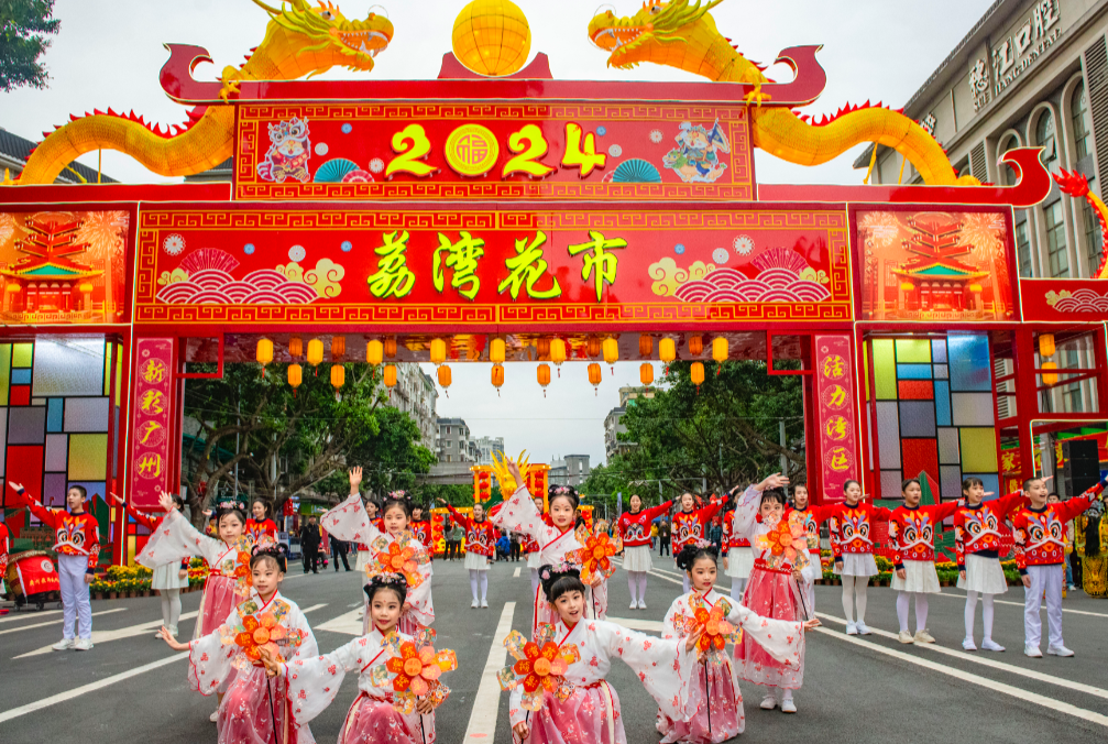 新牌楼、新“IP”、新活动。2月6日上午,随着一声锣鼓声响,2024年荔湾区传统迎春花市正式开市。同日,2024广州水上花市启动。