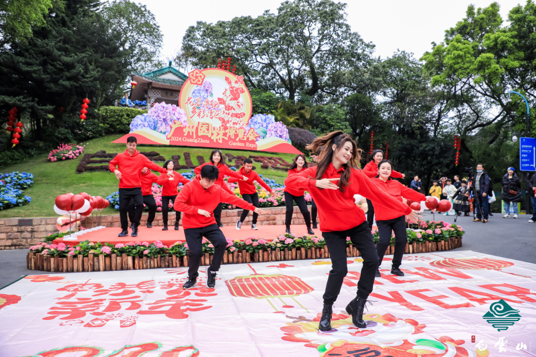 春节代表着团圆美满,跟“绣球花”的花语不谋而合。白云山鸣春谷景区喜迎新春,开展“2024年云山绣球花展”,并将绣球花作为鸣春谷景区主题花,在山顶广场、南门广场精心打造绣球花境,营造梦幻花海的浪漫氛围,奉上“绣”丽云山的视觉盛宴。2月6日在山顶广场还举办了2024年绣球花展开幕式,传统汉服秀、民族舞和时尚“科目三”“小土豆”齐齐上演,将传统与潮流相结合,带动游客欢乐情绪,掀起“摇摆热潮”。