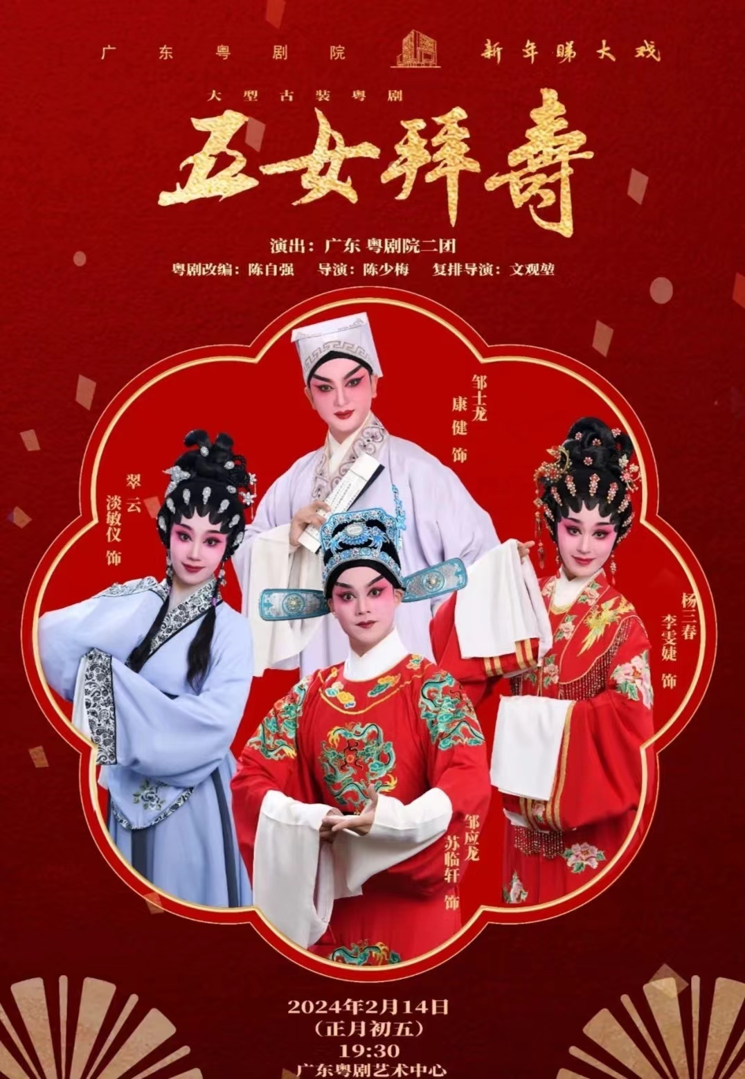 2月14日(大年初五)上演的粤剧《五女拜寿》,将呈现明代嘉靖年间户部侍郎杨继康在经受了一场兴衰荣辱的变迁之后,终在寿堂上重叙天伦乐、老少欢娱尽展颜的欢喜景象。