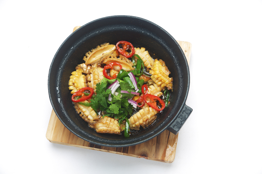 啫啫煲是广州的一道经典美食,因在猛火下瓦煲中的食材会发出“嗞嗞”声,与粤语“啫啫”发音相似,所以被称为啫啫煲。在广州,万物皆可“啫”,就连水果也可以啫一下。山海陆空的食材进入瓦煲猛“啫”,吃的就是鲜和嫩。