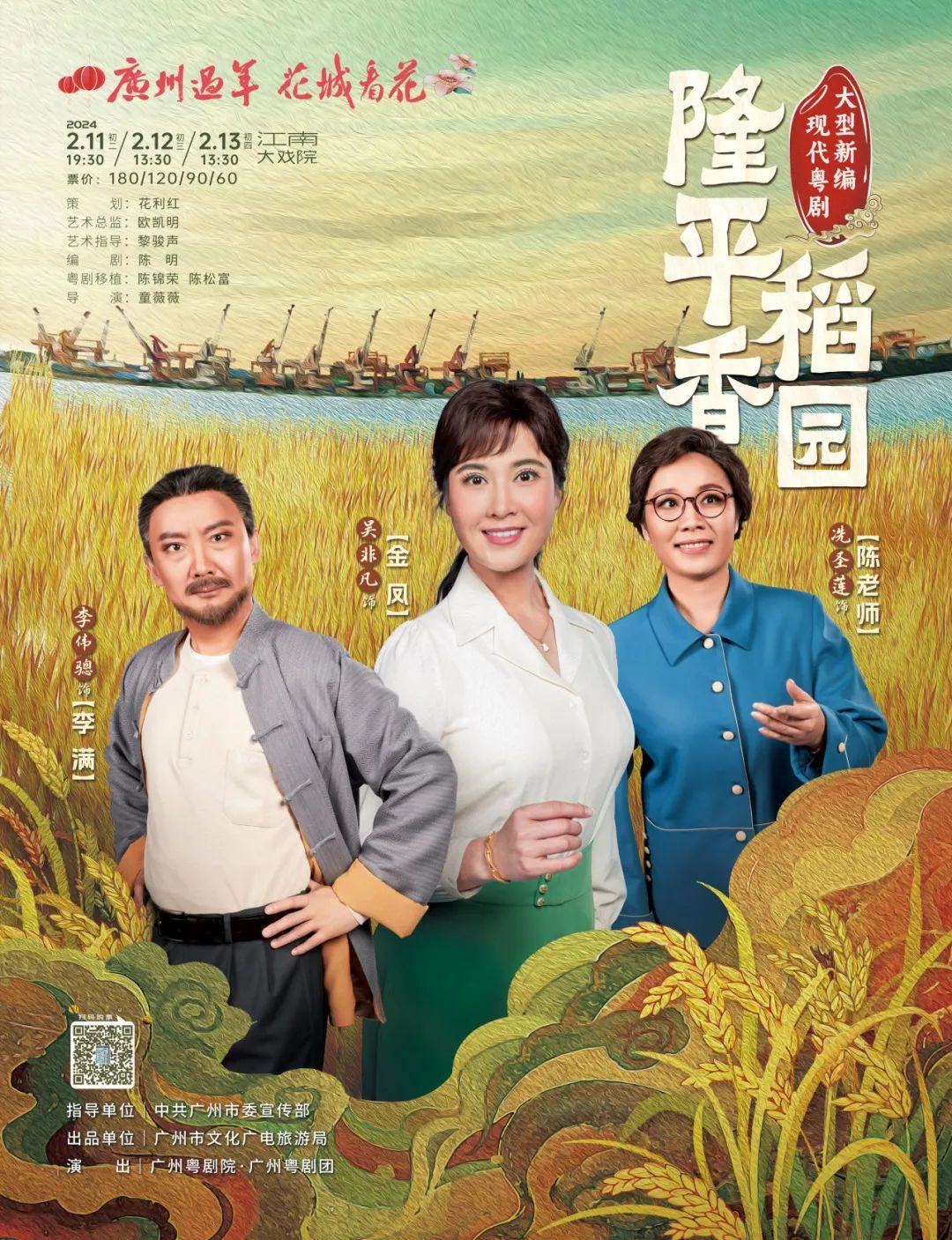 2月11日(正月初二)至2月13日(正月初四),由广州粤剧团创排演出的大型新编现代粤剧《隆平稻香园》,作为广州粤剧院龙年的开箱大戏,将在江南大戏院一连演出3场。
